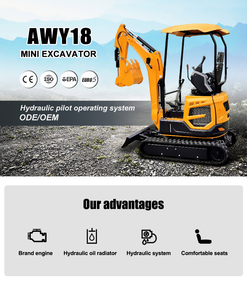 La micro-pelle hydraulique sur chenilles est largement utilisée dans les serres, à l'intérieur et dans l'aménagement paysager. Par exemple, une mini-pelle de 1,8 tonne peut être utilisée pour appliquer des engrais, creuser profondément dans le verger, creuser des canaux, planter des arbres, creuser des tranchées de câbles, creuser des conduites d'eau et casser à l'intérieur. La micro-pelle sur chenilles AWY18 de 1,8 t ne prend que quelques minutes pour se familiariser avec ses opérations.Agissez maintenant, contactez-nous !