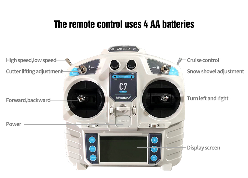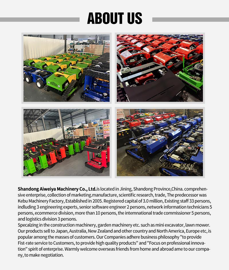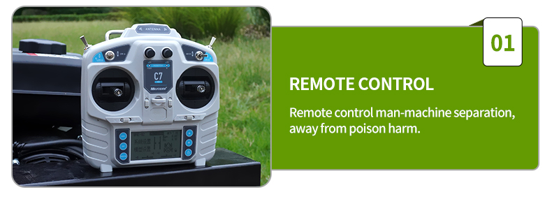 1. télécommande : équipé d'une télécommande sans fil pratique, l'opérateur peut contrôler le mouvement de la tondeuse et le processus de tonte à distance, sans avoir besoin de s'approcher de la machine, ce qui améliore considérablement la sécurité.