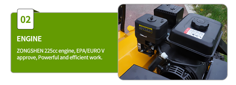 4. Tonte à haute efficacité : la machine adopte des lames puissantes et des moteurs à haute efficacité, qui peuvent tondre rapidement de grandes surfaces de pelouse, tout en gardant la hauteur de tonte uniforme et nette, et améliorer l'efficacité opérationnelle.